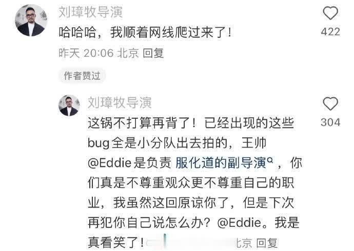 不眠日导演现身网友评论区回应穿帮镜头:“这锅不打算再背了!已经出现的这些bug全是小分队出去拍的。” 紧接着艾特服化道副导演称:“你们真是不尊重观众更不尊重自己的职业,我虽然这回原谅你了聚宝盆配资,但是下次再犯你自己说怎么办?我是真看笑了!”